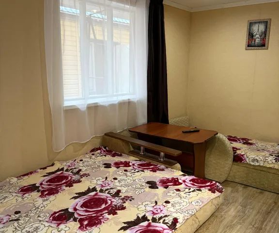 Уютная, чистая комната, площадью 16 кв. м, вместимостью до 4 человек, в комнате все удобства, кондиционер, ТВ, холодильник. Комната расположена на 1 этаже (здание одноэтажное), в гостевом доме всего 8 номеров. Кухня общая, со всей необходимой утварью . Для малышей: детская площадка, батут, доска с мелками. Очень зелёная территория! Бесплатный wi-fi. Вся инфраструктура в 2-5 минутах: рынки, аптеки, магазины и т.д. До моря, залива и лечебных грязей 5 минут на авто!