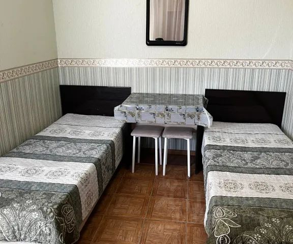 Сдаются номера в гостевом доме. Две односпальные кровати, раскладной диван, сплит система, телевизор, столик, камодик, вешалка для вещей. Сан узел в номере. Кухня, стиральная машина, гладильная доска, утюг на этаже.
