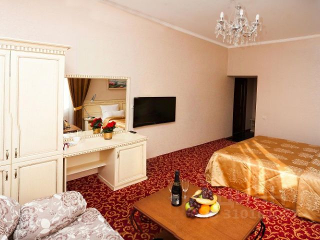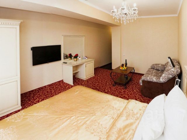 Современный четырехэтажный отель "Уют Рипсиме" находится в Краснодаре и состоит из 46 номеров. Номера оснащены всем техническим оборудованием необходимым для полноценного отдыха: беспроводной интернет Wi-Fi, индивидуальная система кондиционирования, интерактивное ТВ, холодильник, уютная ванная комната. Изысканная итальянская мебель, уютный дизайн номеров. Услуги прачечной и химчистки, утюжки белья, охраняемая круглосуточная автостоянка. В номере большая двуспальная кровать (2*2.20), раскладной диван, сплит-система, холодильник, большой ЖК-телевизор, телефон, стул, туалетный столик с зеркалом, прикроватные тумбы, шкаф для белья. Санузел с душевой кабинкой, унитазом, раковиной с зеркалом, имеется фен, тапочки, разовые туалетные принадлежности.