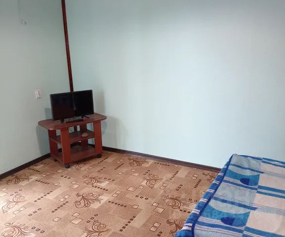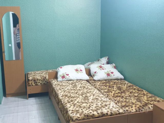 Двухкомнатный номер без балкона с двуспальной кроватью и двумя доп. диванами (оба раскладываются). Немного видно море, стена соседнего здания.