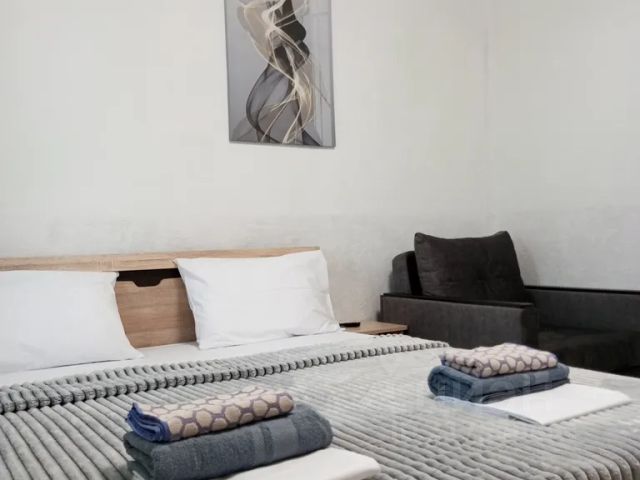 Для Гостей нашего гостевого дома предоставлены комфортные номера с современным ремонтом в одноэтажных кирпичных корпусах, где вы будете обеспечены спокойному проживанию: никто не будет мешать шумом сверху! Удачное расположение корпусов не создает на территории скопления Гостей! Двухкомнатный 4-х местный номер состоит из 2-х раздельных комнат, со всеми удобствами: душевая, унитаз, кондиционер, холодильник, телевизор ЖК, столик со стульями, комод, шкаф плательный двустворчатый, кровати : одна двуспальная и две односпальные, буфет с посудой, эл. чайник. В номерах и на территории имеется Wi-Fi. У каждого номера своя отдельная веранда, покрытая зеленью, где в утренние часы, под пение птиц, на свежем воздухе можно выпить чашечку кофе. Для детей имеется небольшая игровая площадка, где имеются: качели, качалки, турник, гамак, батут, детский бассейн. Для вашего семейного отдыха с маленькими детьми соблюдаем дневной час отдыха и в вечернее время после 22 часов. Территория просторная, имеются уголки отдыха, виноградные беседки, лавочки, имеются две просторные кухни самоприготовления, со всеми принадлежностями, микроволновая печь СВЧ. Предоставляем в бесплатное пользование камин-барбекю, гладильная, утюг. На территории имеется свое кафе "Астери", где вы можете отдохнуть и сделать заказ. Имеется парковка на 5-6 машин на площадке у двора, под видеонаблюдением. Гостевой дом расположен в 5-ти минутах от центра и в 7-ми минутах от моря. Улица тупиковая, поэтому нет шума от проезжающих машин. Обеспечена встреча и проводы от ж/д вокзала и аэропорта до гостиницы. На территории двора имеется глубинная скважина, что обеспечивается бесперебойное водоснабжение горячей и холодной водой! С животными не принимаем!