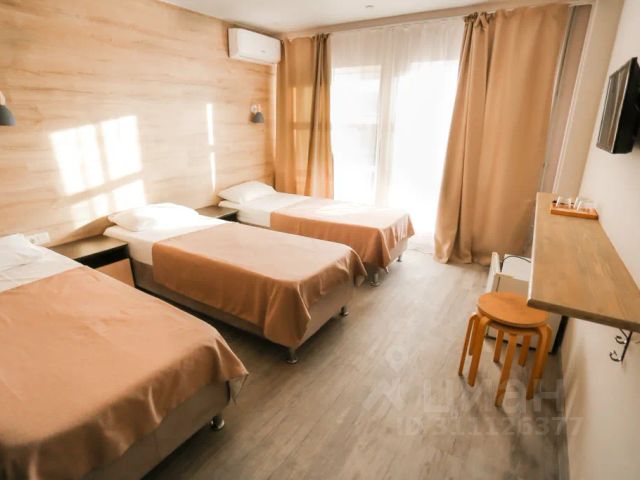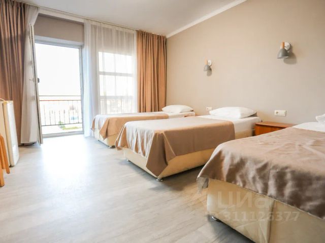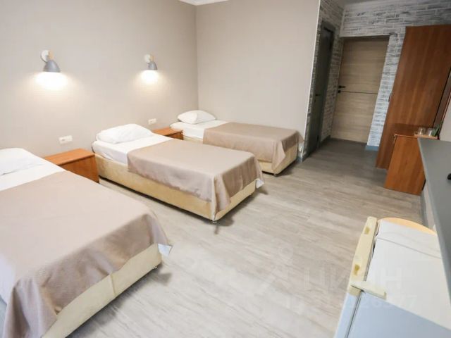 Однокомнатный 3-местный номер с одной двуспальной кроватью и одной полуторной, либо с тремя полуторными кроватями. Ортопедические матрасы, стол, шкаф, зеркало, индивидуальная система кондиционирования, tv, холодильник. Санузел с душевой кабиной, раковиной, зеркалом и средствами гигиены находится в номере.