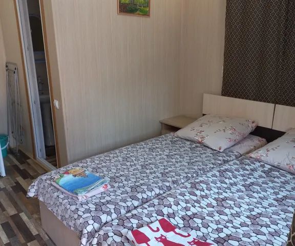комната для2-3 чел в кирп доме, двухспальная кровать, тахта, шкаф, ТВ, холод, сплит-система, кухня, стол, душ и туалет в номере цена от700-1000,/ чел, в зависимости от месяца проживания