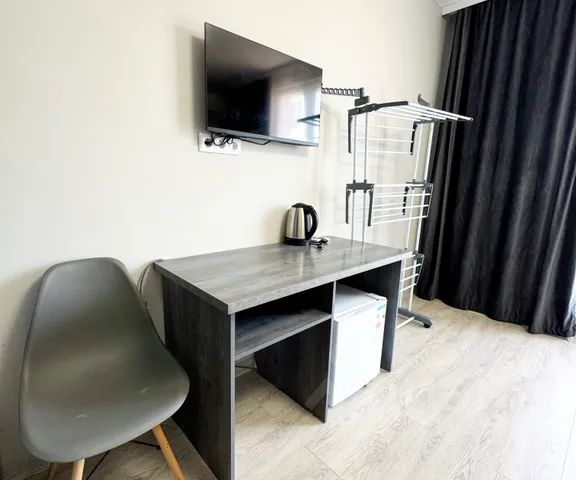 Уютный 2х-местный номер для 2х-3х гостей, в номере двуспальная кровать и кресло кровать, санузел,кондиционер, телевизор, холодильник.