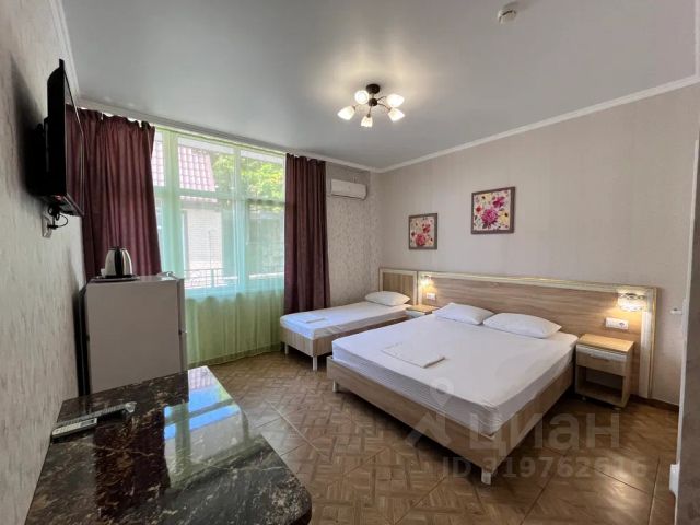 Четырёхместный номер с видом на море, горы. На территории есть бассейн большой, мангал, есть шампура, решётки. Во дворе много растущих пальм. До моря 20 минут пешком, возим бесплатно несколько раз в день на своём транспорте 5 мин, очень удобно. Возим недорого на экскурсию. Подскажу, где что находится, как попасть на песчанный бесплатный пляж, а так стоимость на песчаный пляж 400 р. с человека. Где вкусно покушать, где взять мясо на шашлык, и многое другое. Ждём вас к нам на отдых.