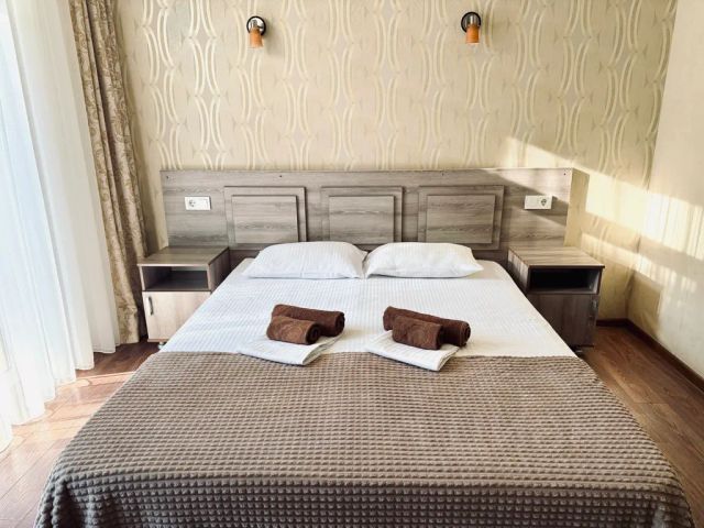 Двухкомнатный номер рассчитан на проживание 4 человек. Номер этой категории подойдет для комфортного отдыха семейных пар с детьми или компании друзей. Номер располагает всем необходимым для комфортного проживания: удобной мебелью, кондиционером, холодильником, телевизором и собственной душевой комнатой. Имеется кухня общего пользования.