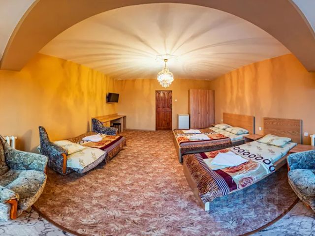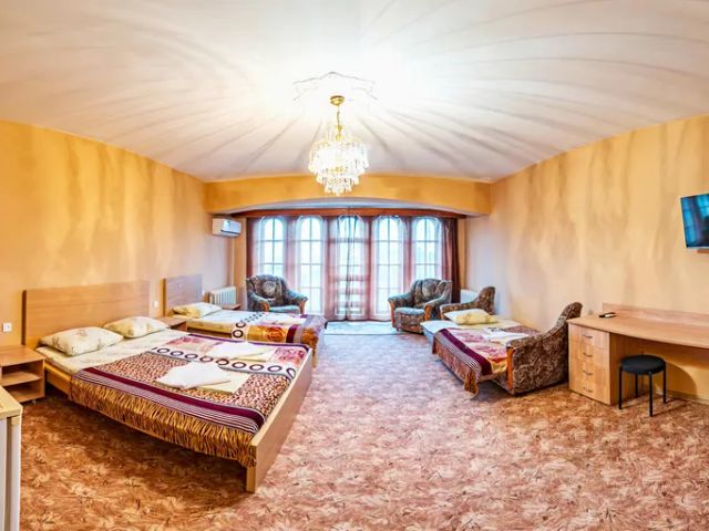 Гостевой дом Платонов расположен в рекреационной зоне города Сочи, на берегу горной реки Куапсе, в 3 км от железнодорожной станции "Лазаревское". Находится в 53 км от центра города Сочи. В окрестностях имеются туристические тропы с водопадами и древними дольменами. В стоимость проживания входит трёхразовое питание по системе "шведский стол".В зимний период (завтрак, обед, ужин) без шведской линии. К услугам гостей — оборудованный тренажёрный зал, массажное кресло, шунгитовая комната, плавательный бассейн с противотоком и гидромассажем, сауна, кинотеатр, лифт. Для гостей также имеется компьютерная зона, библиотека, зона РS и Wi-Fi. На территории организованы места для отдыха и барбекю. Осуществляется бесплатный трансфер на пляж санатория "Одиссея" (шезлонги, зонты и полотенца предоставляются бесплатно). На территории дома есть спортивная и детская площадки. Для удобства гостей имеется услуга проката велосипедов и охраняемая парковка. Для бизнес-мероприятий предусмотрен конференц-зал. Возможна организация платного трансфера по запросу. Для гостей также доступны: услуги прачечной, индивидуальная регистрация заезда и выезда, организация экскурсий. Номерной фонд представлен 23 комфортабельными комнатами, со всеми необходимыми удобствами. Категория "Стандарт" расположены на цокольном этаже здания. В стоимость проживания входит питание в формате шведского стола (завтрак, обед и ужин). Самостоятельно можно воспользоваться мангалом. Расстояние до аэропорта Сочи - 75 км. На территории есть беседки для отдыха, терраса для загара. Номера категории Стандарт, Делюкс, Пентхаус - только для двоих гостей, без доп. места. Все услуги работают с 8.00-21.00. Ресепшен работает с 8.00-21.00 Люкс двухкомнатный, 40 кв.м., с балконом, кровать king size+диван, Wi-fi, LCD TV, холодильник, кофемашина, кондиционер, сан узел, платяной шкаф, гладильная доска, утюг, сушилка для белья, фен, полотенца, халаты/тапочки