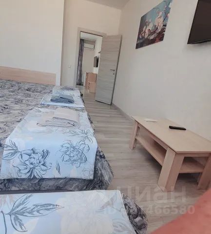 В гостиной зона для отдыха из мягкой мебели с журнальным столиком, микроволновая печь, чайник.