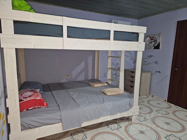 На первом этаже расположена кухня со всем необходимым для самостоятельного приготовления пищи (газовая плита, холодильники, посуда, микроволновые печи). Столовая для приема пищи, совмещенная с детским игровым уголком - очень удобно обедать и присматривать за детьми. Для малышей - манеж, бассейн с шариками, развивающие игрушки. Для деток постарше - столы, раскраски, настольные игры, книги, доска для рисования. Для взрослых - телевизор, дартс и...внимание... ИГРОВАЯ КОНСОЛЬ С КУЛЬТОВЫМИ ИГРАМИ (СУПЕР-МАРИО, КОНР-СТРАЙК И Т.Д.)