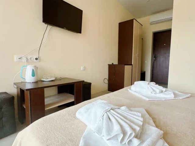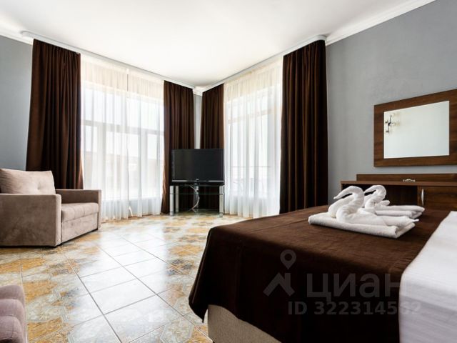 В номере для гостей имеются следующие удобства: балкон с видом на море, двуспальная кровать, большой диван (раскладывается), кресло-кровать, прикроватные тумбы, шкаф, холодильник, телевизор с кабельным ТВ, ванная, туалет, комплект полотенец, мыльные принадлежности, сплит-система, wi-fi, вторая комната с собственной кухней и мягким диваном.