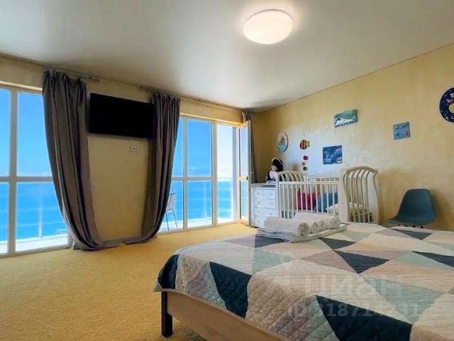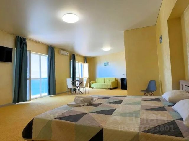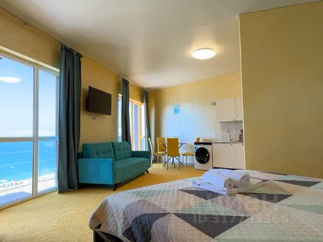Стильный уютный номер с потрясающим видом на море. В номере имеется все доя вашего комфорта: кухонная зона с бытовой техникой, посудой, чай/кофе, обеденная зона, большая 2-спальная кровать с постельным бельем премиум класса, балкон с мебелью с шикарным видом. Тапочки, душевые принадлежности, шторы Блэкаут. Кондиционер, ТВ, телефон, wi-fi
