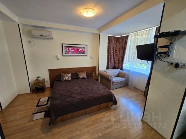 Однокомнатный. Площадь: 28 кв.м. В номере: Двуспальная кровать, двуспальный диван, шкаф, зеркало, полки, телевизор, холодильник, стол, стулья, чайник с мелкой посудой. Совмещенный душ, туалет, полотенца все кроме пляжных, постельное белье, фен. Мыло, гель для душа, шампунь - в дозаторах, халаты. Окна выходят во внутренний двор. Уборка, смена полотенец 1 раз в 3 дня. Смена постельного белья 1 раз в 5 дней.