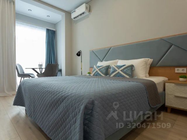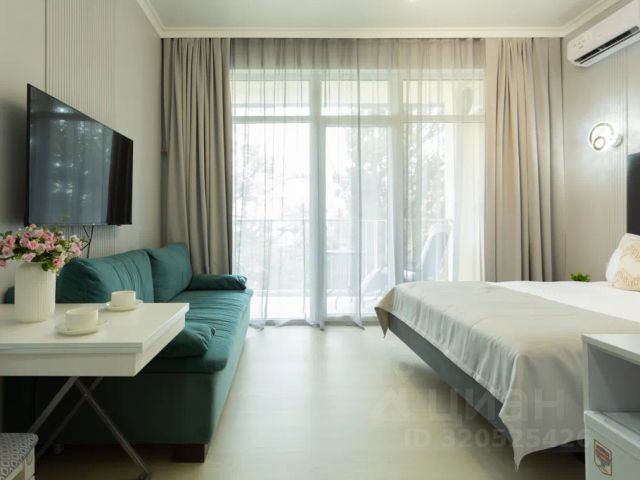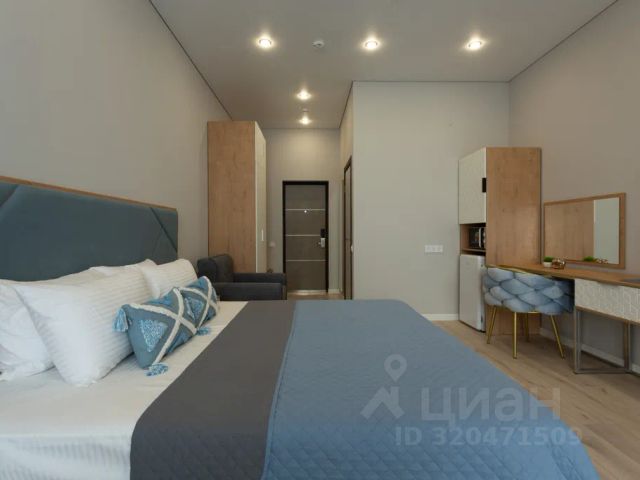 Однокомнатные апартаменты площадью 35 кв. М оснащены одной двуспальной кроватью размера "queen-size". В номере имеется оборудованная мини-кухня, необходимая посуда и рабочее место. Отель предоставляет постельное бельё премиум-класса и косметические средства. Фотографии, размещённые на сайте, носят исключительно информационный характер. Планировка, вид с балкона и размеры комнат могут отличаться от представленных на фотографиях в зависимости от конкретного номера.