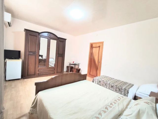 Сдается комната с балконом и санузлом в частном секторе. Кондиционер, телевизор и холодильник в комнате. Есть общая кухня и места отдыха во дворе. Море и вся инфраструктура рядом