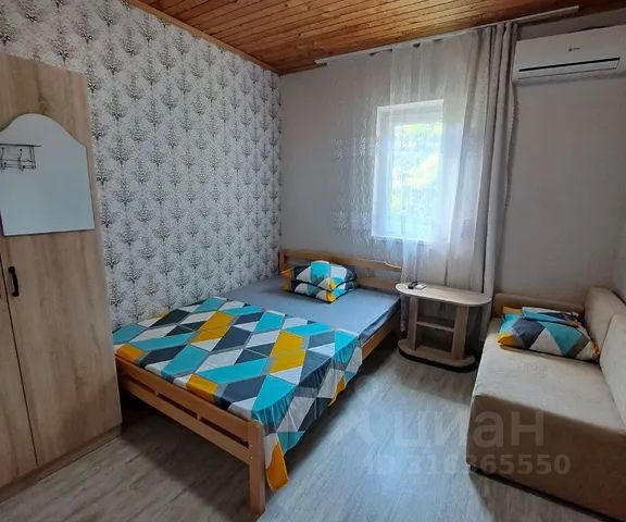 В двухкомнатном номере двуспальная кровать,два дивана,кондиционер,санузел,холодильник, телевизор. На территории гостевого дома есть общая кухня для самостоятельного приготовления еды. До моря 5-7 минут.
