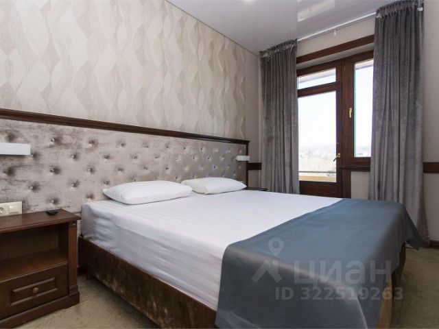 В номере мини холодильник,чайник,чашки,стаканы и стопочки,фен,сплит система,шкаф,тумбочки,стол,телевизор,гладильная доска,утюг. Двуспальная кровать ,диван-кровать шириной 1.3 м. и конечно же санузел. Выход на общий балкон,где есть столик,за которым можно спокойно посидеть в удобных креслах и полюбоваться на закат или за красивейшим панорамным видом на горы и инфраструктуру поселка. Обьекты новые ,с хорошим качественным ремонтом,с панорамными окнами в пол. В завершение интерьера -окна обрамлены в бархат и лен. д на пляж "радужный" бонусом , бесплатный вход на пляж "радужный"