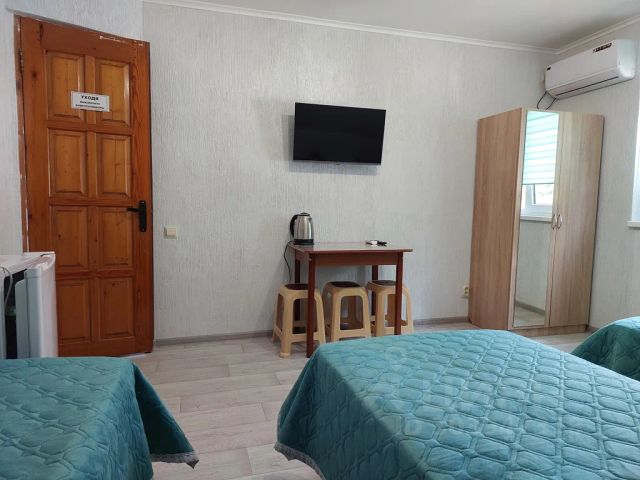 Трехместный номер-студия находится в доме, расположенном в тихом, зеленом районе курортного поселка Шепси у подножия горы на берегу реки. Включает спальную зону, кухонную зону, душ, туалет. В номере есть всё необходимое для комфортного отдыха: три односпальные кровати, сплит-система, телевизор, Wi-Fi, шкаф для одежды, тумбочки, кухонная зона с холодильником, обеденным столом, микроволновой печью, посудой, электрическим чайником. В номере панорамные окна и выход на балкон с видом на горы. В любое время гости могут воспользоваться общей кухней, где есть всё необходимое для самостоятельного приготовления пищи. На территории гостевого дома имеются беседки, зона барбекю, терраса для принятия солнечных ванн, бесплатная парковка на территории. Гостевой дом расположен в 1,5 км от пляжа и ж/д вокзала Шепси. В пешей доступности магазины Пятерочка, Магнит, Красное & Белое, рынок, кафе. До пляжа 30-40 минут пешком без спусков и подъёмов, на автомобиле 5-7 минут. Пляж в Шепси галечный, немноголюдный. Возможно предоставление трансфера. Бесплатные услуги: смена белья и полотенец через 5-7 дней; гладильная доска, утюг; уборка (по договоренности); вызов такси. Платные услуги: стиральная машина; трансфер. Ограничения: курение в номерах запрещено (курить можно в специально отведенном месте); соблюдать тишину с 23.00 до 8.00 часов; размещение с домашними животными по предварительному запросу (с октября по май); не принимаем детей до 3 лет. Принимаем гостей круглый год. Если вы планируете отдых в июне-августе, бронируйте заранее. Не упустите возможность недорого отдохнуть в уютной домашней атмосфере, подышать чистым горным воздухом, полюбоваться прекрасной природой, послушать пение птиц вдали от шума и суеты, восстановить силы и здоровье. Гостеприимные хозяева встретят с радушием и обеспечат комфортный отдых!