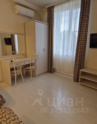 Уютная комната в гостевом доме. Потолки - 3 метра. В комнате все необходимое (кровати, столик, стулья, зеркало, вешалка, сплит-система). 2 сан.узла на 4 комнаты. На 1-м этаже большая, общая, оборудованная кухня.Ежедневная влажная уборка.