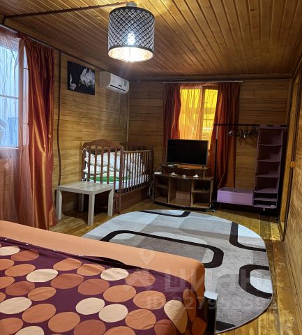 В большой комнате двухспальная кровать, два дивана двухспальных, шкаф пенал, тумба, телевизор, вешалка для одежды