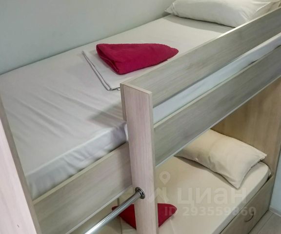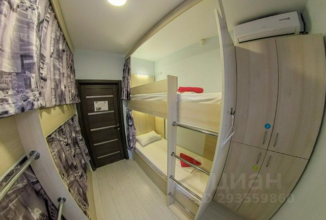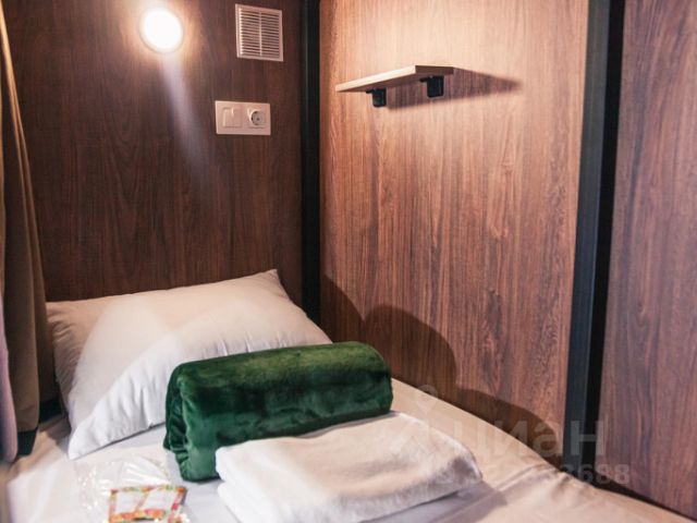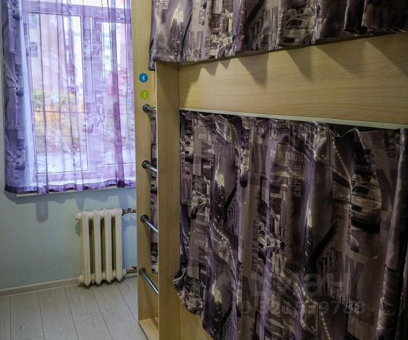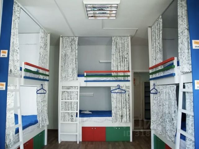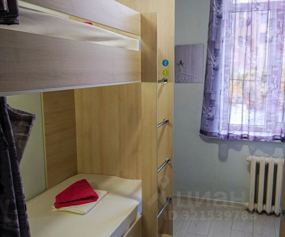 Кровать в женском четырехместном номере. Уютный светлый номер, предназначенный для проживания только в женской компании. Каждое спальное место оборудовано ортопедическим матрасом, индивидуальной лампочкой освещения, розеткой и шкафчиком для личных вещей. Душевые и санузлы расположены на этаже.