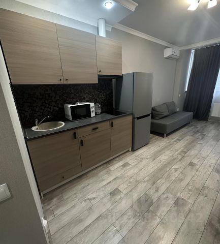 Сдается чистая и уютная квартира в ЖК Дарград, комфортная для проживания 1, максимум 2 человек. В квартире выполнен свежий ремонт, имеется необходимая техника (стиральная машина, варочная панель, холодильник, сплит), мебель (диван, шкаф, комод, кухонная мебель). В пешей доступности множество магазинов, пункты выдачи, рынок, школа, остановки общественного транспорта.