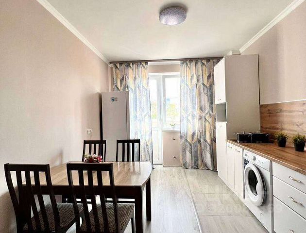 Бытовая техника: сенсорная варочная панель, микроволновая печь, холодильник с морозильной камерой, электрический чайник, тостер, вытяжка, стиральная машина, бойлер, фен, сплит-система, smart-телевизор с голосовым управлением, утюг, гладильная доска, сушилка, полотенцесушитель.