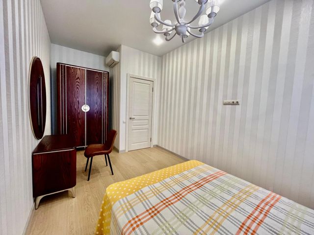 на 5 этаже с ВИДОМ НА МОРЕ и ГОРОД ул.Ленина и Крымскую . Квартира с ремонтом, дом сдан в 2015г, три отдельных, спальных места: кровать 1,6*2,0м, диван 1,2*2,0м, кресло кровать 0,6*1,9м.