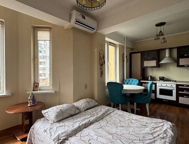 предлагается красивая комфортная студия в новом Жк Классика Юг.монолит, 8 этаж, два лифта,закрытый красивый двор, студия 32 кв.м. Со всем необходимым для жизни, посудой и техникой, сп. Место диван + кровать односпал. Электро плита, вода всегда , кроме чп в микрорайоне, в пешей доступности и школы и сады , лента, радио колледж, клуб патриот и многое другое, октябрь- июнь включительно.