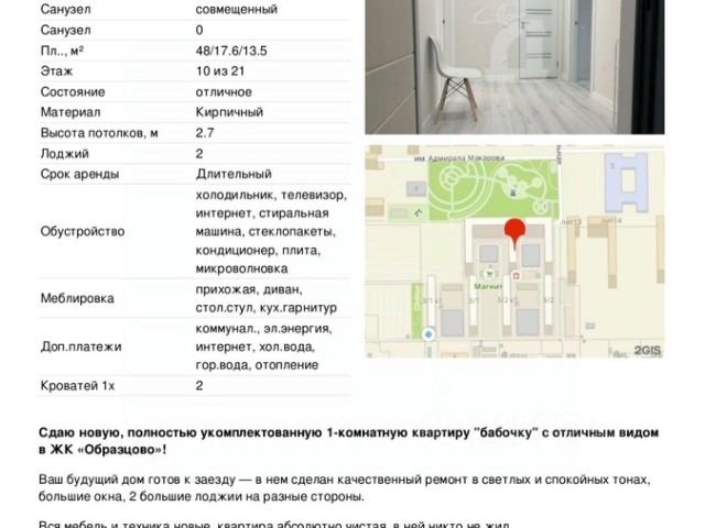 От года, комм. платежи не включены, без комиссии, залог 40 000 ₽