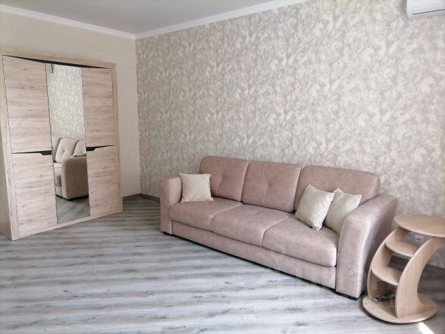 Сдаётся уютная однокомнатная квартира в новом жилом комплексе на Стахановской улице, 1/5к4, в Краснодаре. Общая площадь квартиры — 47 кв. м, расположена на 10 этаже 20-этажного монолитного дома, построенного в 2023 году. Высота потолков составляет 2.89 метра, что создаёт ощущение простора. В квартире выполнен качественный евроремонт. Просторная жилая комната с мебелью и кухня площадью 10 кв. м с необходимой мебелью готовы к вашему переезду. Из техники есть кондиционер, холодильник, телевизор и стиральная машина, что обеспечит комфортное проживание. Санузел совмещённый, оборудован ванной. Из окон открывается вид на улицу, поэтому квартира наполнена светом. Также имеется лоджия, где можно обустроить зону отдыха. Дом оборудован двумя лифтами — пассажирским и грузовым, что удобно для переезда. На территории есть наземная парковка, поэтому вы всегда найдёте место для своего автомобиля. Удобное расположение комплекса позволяет быстро добраться до всех необходимых объектов инфраструктуры. В пешей доступности находятся школы, детские сады, клиники и магазины. Неподалёку расположены остановки общественного транспорта, что позволяет быстро и удобно добраться в любую точку города. Квартира сдаётся напрямую от собственника, без комиссии. Оплата аренды производится ежемесячно. Аренда на длительный срок. Квартира идеально подойдёт для одного человека или пары. Снять квартиру в микрорайоне Авиагородок в городе Краснодар на длительный срок.