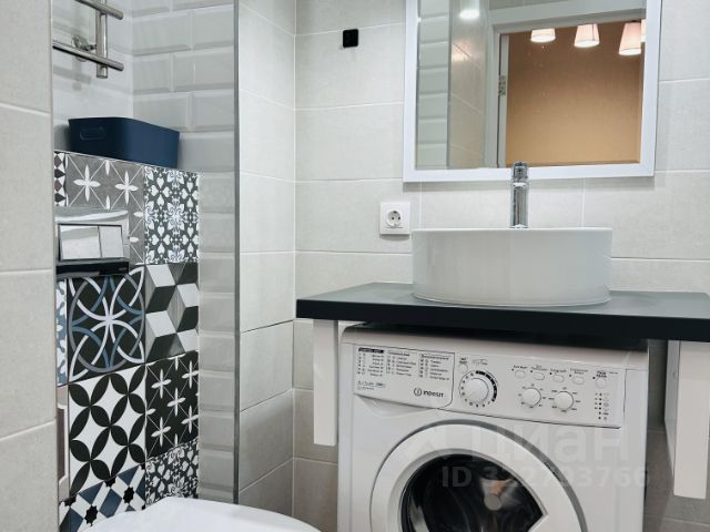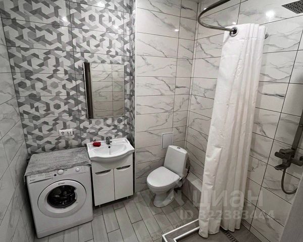 Ванная комната с душем, стиральной машинкой, электрическим полотенцесушителем
