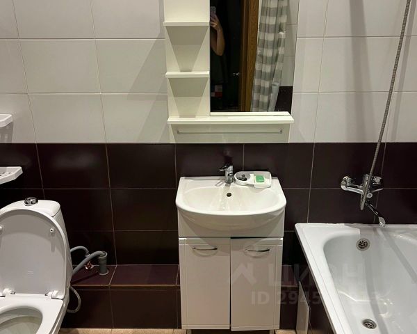 Собственник. Дом сдан 7 лет назад. Ремонт от застройщика. В квартире есть всё необходимое: сплит-система, холодильник, стиральная машина, электрическая плита, микроволновая печь, шкафы, диван, телевизор. Рядом с домом: магнит, работает 24/7, остановки, конечная.