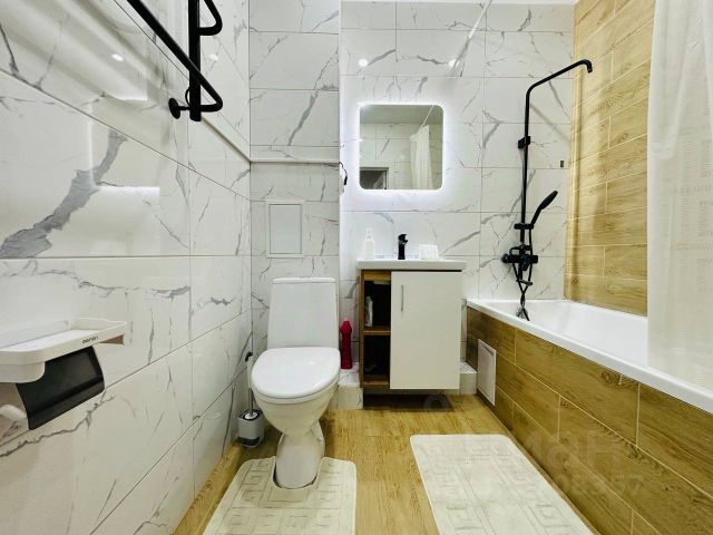 Санузел совмещённый, есть ванна, водонагреватель не установлен, т.к. проблем с водой в доме не бывает, но по запросу и необходимости установим. Разные сценарии освещения и другие мелочи для приятного расслабления в ванной.