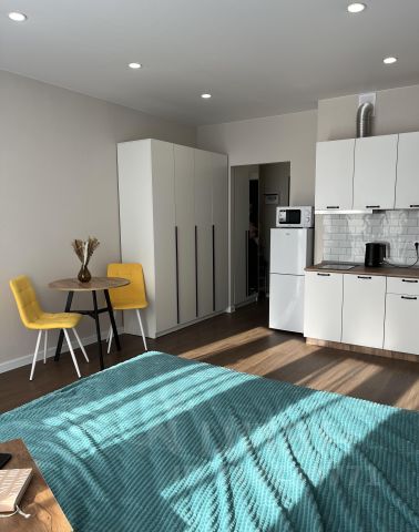 Сдаётся студия ЖК "САМОЛЁТ", ул. Беличенко 90к1, Аренда на длительный срок в кирпичном доме 2025 года постройки. Готовы рассмотреть аренду под коммерческую деятельность. В квартире выполнен косметический ремонт, что создаёт уютную атмосферу. Просторная комната оборудована необходимой мебелью: вместительный шкаф, обеденный стол и стулья, а также диван. Из техники имеется холодильник, телевизор, варочная панель, микроволновка, чайник, стиральная машина. Ванная комната совмещена и оснащена современной сантехникой. Для вашего удобства предусмотрен пассажирский и грузовой лифты. Для комфортного входа/выхода имеются 2 противоположных входа (один на территорию закрытого двора, второй на внешнюю сторону дома Квартира расположена на 11 этаже из 16, с видом на городскую улицу. В подъезде чисто и аккуратно. Курение запрещено, можно проживать с детьми, но без животных. Аренда в месяц 19.000 руб.+ коммунальные платежи, залог 19.000 руб.(можно разбить на 2 платежа) Услуга Агента оплачивается на момент заселения, оплата разовая 5.000 руб.