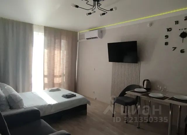 Светлая уютная студия на 7м этаже 9ти этажного дома. В квартире есть все для комфортного проживания: Сплит-система Холодильник Стиральная машина Микроволновка Тв, вайфай Электрочайник, фен, утюг Постельное белье, полотенца, тапочки Посуда для приготовления и приёма пищи Заселение с 13ч Выезд до 12ч Расчётное время 12ч Не для шумных компаний Размещение до 2х человек