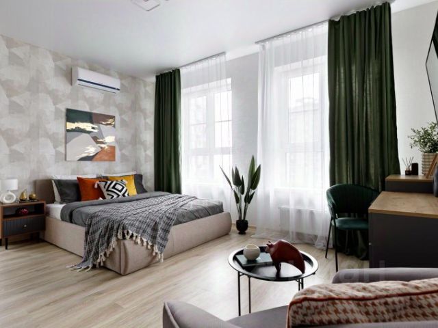 Во второй комнате комфортный двуспальная ковать и по запросу возможно размещение еще одного спального места