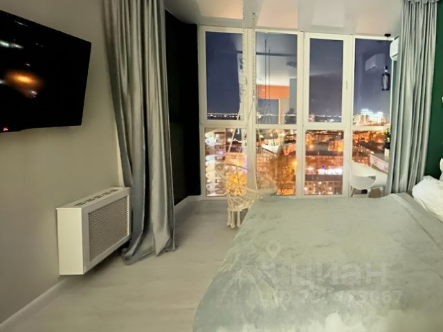 Уютная студия от собственника с панорамными окнами, с видом на реку, горы и город. В квартире имеется всё необходимое для комфортного проживания, как дома! В шаговой доступности остановки любого общественного транспорта, можно уехать в любую точку города, в шаговой Сафари-парк, Восточный рынок.. . круглосуточный минимаркет в доме. Парковка бесплатная у дома с круглосуточной охраной от ЖК, видеонаблюдение, 2-этажная детская площадка, окончательную стоимость узнавать по телефону, скидки зависят от количества суток. В 4км от парка Галицкого, в 2 км от ТЦ СБС Мегамолл, Галактика, Медиаплаза, Ашан и т.д Стоимость зависит от количества суток.