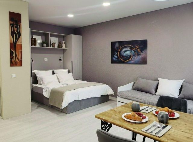 В квартире есть все необходимое для проживания: кондиционер, холодильник, плита, духовой шкаф, микроволновая печь, стиральная машина, водонагреватель, ЖК телевизор, утюг, фен, робот пылесос, резервный источник водоснабжения, система фильтрации питьевой воды, проводной интернет (100 мбит/с) с Wi-Fi, постельное белье, полотенца и кухонные принадлежности, сушилка, гладильная доска.