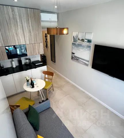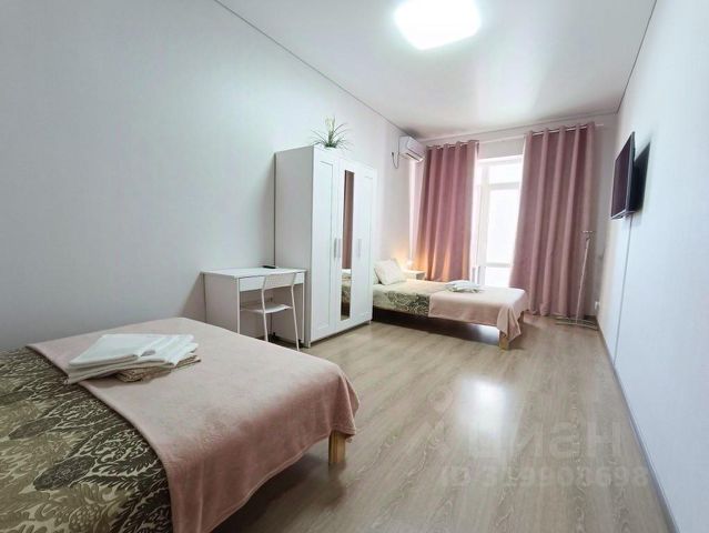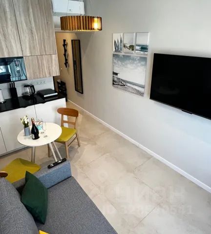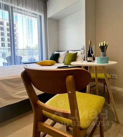 Апартамент-студия 224 однокомнатный (39 кв.м), рассчитанный на 4 человек, вид на море боковой, без балкона, панорамное окно на всю стену. В апартаментах есть кухня, оборудованная всей необходимой техникой и посудой, посудомойка, санузел, интернет, сплит-система, холодильник, телевизор, стиральная машина, водонагреватель, гладильные принадлежности, бельё, полотенца, сушилка для белья, обеденная зона, двуспальная кровать, двуспальный диван-кровать, москитные сетки на окнах и двери.
