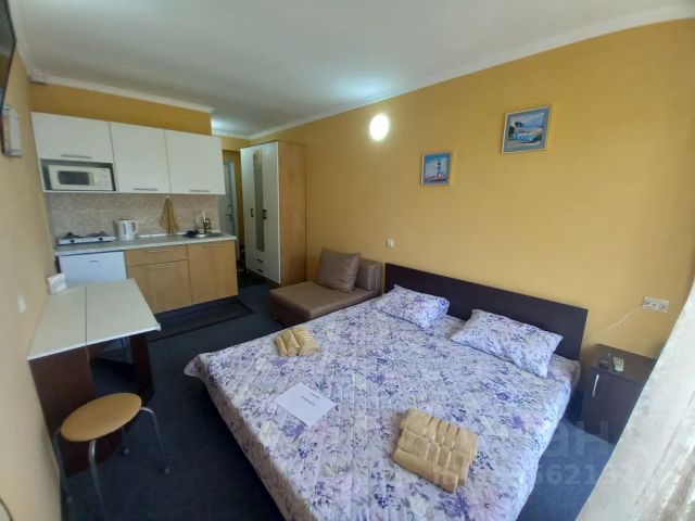 Мечтаете о тихом семейном отдыхе? Хотите расслабиться и привести мысли в порядок? Тогда Вы по адресу. Небольшая, но вполне комфортная студия в тихом морском посёлке Лермонтово, в 7-10 минутах спокойного шага до пляжа ждёт именно вас! Студия расположена на втором этаже апартаментного комплекса Апастория, со своей благоустроенной территорией, детской и спортивными площадками, зоной барбекю. Есть всё необходимое для вашего удобства: большая трёхместная кровать, кресло-кровать, шкаф, обеденный столик, тумбочка, кухонная зона с элетроплитой, микроволновой печью, посудой, чайником; телевизор, интернет, фен, утюг. Балкон со столиком, живописным видом и чистым прибрежным воздухом. В шаговой доступности аптеки, магазины, столовые.