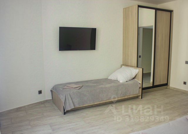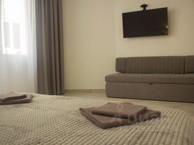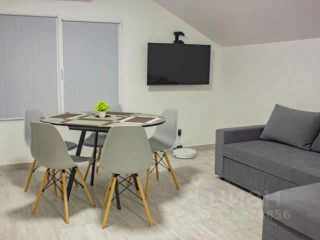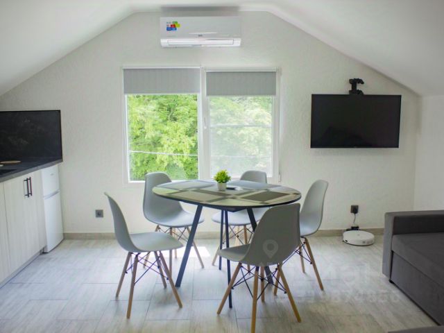 Это достаточно просторная однокомнатная квартира на втором этаже четырехэтажного коттеджа, в которой с комфортом может разместиться до трех взрослых человек или двое взрослых и двое детей.