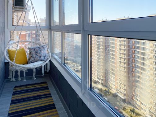 — Просторный балкон с панорамным остеклением, с зоной отдыха с видом на город и теплыми полами