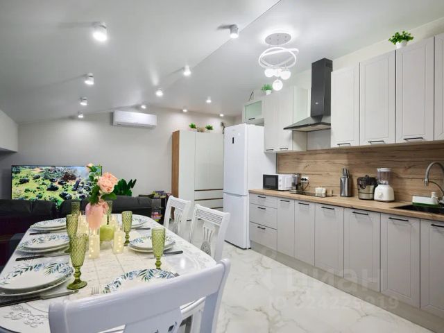 — Бытовая техника: сенсорная варочная панель, холодильник, электрический чайник, микроволновка, тостер, вытяжка, стиральная машина, бойлер, фен, сплит-система, утюг, гладильная доска, сушилка, полотенцесушитель.