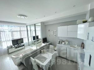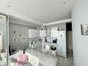 Квартира выполнена в светлых тонах, что создаёт атмосферу уюта и простора. В комнате и на кухне есть вся необходимая мебель, а также современная бытовая техника: кондиционер, холодильник, телевизор и стиральная машина .