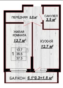 Предлагается в аренду современная, новая однокомнатная квартира с евроремонтов. Общая площадь составляет 37,3 кв. м, из которых жилая — 13,8 кв. м, а кухня — 11,4 кв. м. Квартира расположена на 10 этаже в новом доме, построенном в 2022 году, из 18 этажей. Высокие потолки 2,8 метра и окна, выходящие во двор, создают атмосферу простора и уюта.
