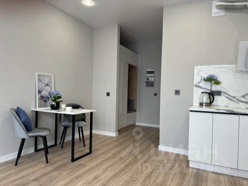 В квартире сделан качественный евроремонт. Просторная студия оборудована всем необходимым для комфортного проживания: установлены кондиционер и телевизор, есть холодильник и стиральная машина. В комнате — современная мебель, которая создаёт атмосферу уюта. Санузел совмещённый, в нём установлена душевая кабина. Также имеется балкон, где можно наслаждаться свежим воздухом.