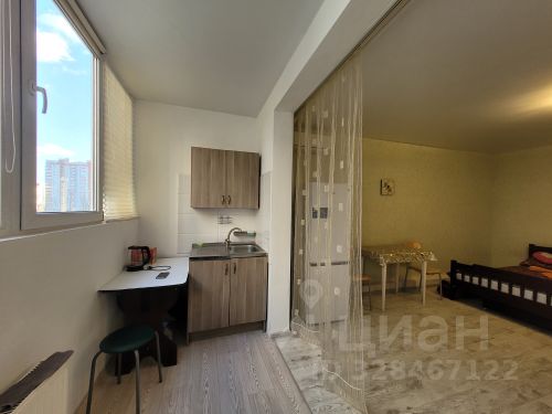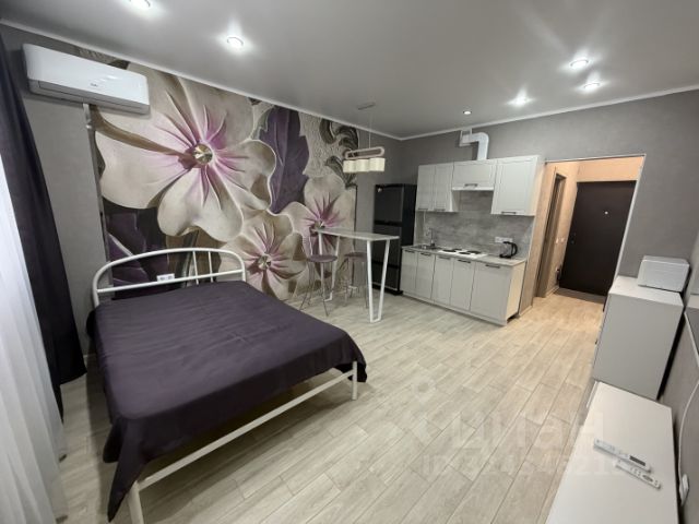 Сдается уютная квартира-студия со свежим ремонтом, совмещённым санузлом и просторным балконом. Квартира оборудована кухонным гарнитуром, мебелью и бытовой техникой. Есть кондиционер, варочная панель, холодильник, стиральная машина и телевизор. Дом находится в районе ККБ в пешей доступности школы и детские сады, продуктовые магазины, медицинские центры, аптеки и салоны красоты. Срок аренды от 3 месяцев строго без животных. Посуды и постельных принадлежностей в квартире нет. Условия аренды 18т.р.+ оплата счётчиков + 10т.р. возвратный залог + 6т.р. комиссия агентства ( оплачивается после подписания договора аренды) Квартира-студия в микрорайоне ККБ в городе Краснодар.