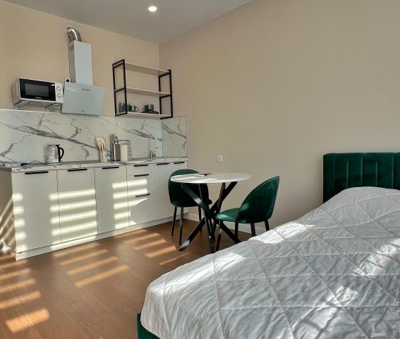 Сдам абсолютно новую, уютную студию с мебелью и ремонтом. Никто ранее не жил. 10 этаж, панорамное окно, красивые дорогие шторы, угловой диван (спальное место 145х200). Все сделано со вкусом, все новое, не из бабушкиной старой мебели Дом у озера (будущего). Без животных и для некурящих. Залог в размере месячной аренды. Собственник.