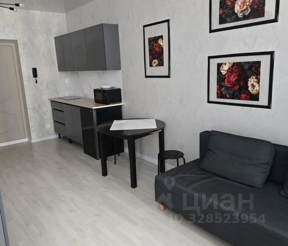 Уютная студия со всей необходимой мебелью и техникой. Рядом с домом расположен детский сад, ТЦ Сыр с магазином Табрис и различные магазины и пункты бытовых услуг. Сдаётся на долгий срок. Без животных.