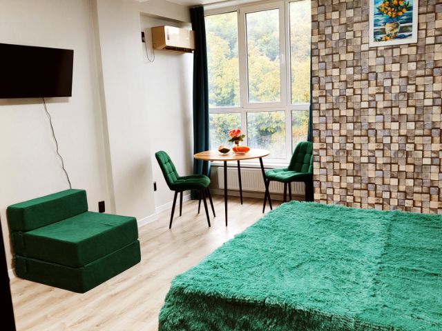 Новый современный ремонт , квартира полностью укомплектована всем необходимым ( кухня , бытовая техника , кондиционер , компьютерный стол с креслом, стиральная машинка, холодильник , микроволновая печь , новые полотенца и постельные принадлежности , посуда ,ТВ , интернет ,Wi-Fi).Спальные места - диван кровать Аскона (160*200 ) с ортопедическим матросом , кресло кровать раскладное односпальное . Подходит для проживания 2-х человек .